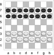 - Если простая шашка достигает последней горизонтали при взятии, то она может этим же ходом продолжать бой, но уже как дамка.