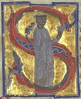 ![]() Портрет Арнаута в инициале S. Сборник песен XIII века | |