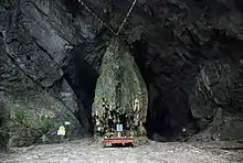 Внутри пещеры стоит множество статуй, в том числе статуи Будды и Гуаньинь, выполненные из зелёного камня, и статуи архатов. Левая нога статуи Гуаньинь вытянута, ступня лежит на цветке лотоса, правая нога согнута, её поддерживает другой цветок лотоса. В руке лежит жемчужина[5]. В пещере также находятся сталактиты и сталагмиты, некоторые из которых от постоянного натирания ладонями посетителей сильно сгладились[4][8].