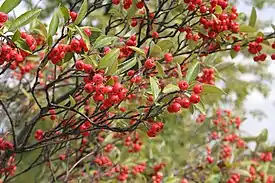 Плоды — красного цвета, 4—10 мм в диаметре, сохраняются на ветвях и зимой.