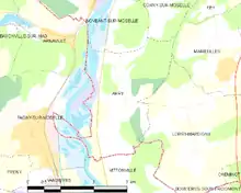 Арри расположен в 280 км к востоку от Парижа и в 17 км к юго-западу от Меца.