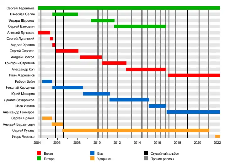 - Сергей Терентьев — гитара, клавишные, аранжировки (2003—наши дни)