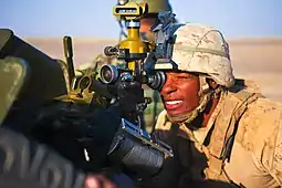 Американский морпех использует панорамный прицел 122-мм гаубицы Д-30