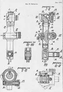 Панорама представляет собой коленчатую оптическую трубу, состоящую из поворотной головки, неподвижного корпуса и окулярной трубки.