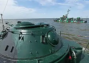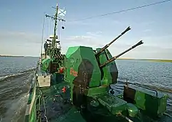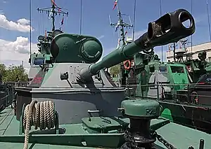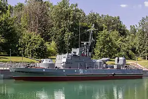 - VB 76 class small river patrol monitors (малые речные патрульные мониторы типа ВБ 76) — румынские речные патрульные малые мониторы типа «VB 76» («vedeta blindante mici»), построенные в количестве 18 единиц на верфи в г. Тулча в период с 1974 по 1977 годы.[23] Представляют значительно переработанный проект советских бронекатеров проекта 1125, внешне эти спроектированные в начале 70х гг XX века корабли напоминают советские бронекатера пр 191М и 192, поставленных в Румынию в 1952 году. Они имеют низкий надводный борт и характерный «горб» в средней части. 76-мм пушка в башне специальной конструкции, на ходовой рубке вторая пулеметная установка и антенна радиолокационной станции. Данные о системе бронирования и толщине брони отсутствуют[1]. Поступали в состав Дунайской флотилии ВМС Румынии.[24]