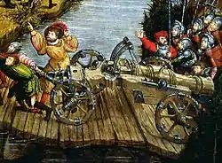 Пушка на лафете. Иллюстрация Бартоломеуса Фрейслебена из «Арсенальной книги» императора Максимилиана I. 1502 г.