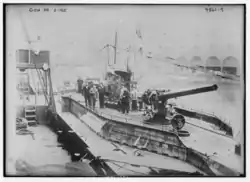 На французских подлодках вначале предусматривалась 37-мм пушка или револьверное скорострельное орудие такого же калибра, некоторые подлодки получили 47-мм орудие, а впоследствии на подлодках «Ньютон», «Монгольфье» и «Фриман» поставили 75-мм орудие образца 1897 года на специальном станке с хорошим[уточнить] углом обстрела. Подводные лодки проекта М. Юттера оснащались одной 47-мм пушкой образца 1885 года, которые уже в ходе Первой мировой войны заменили на 75-мм пушки. Подводные лодки типа «Амфитрит» вооружались 47-мм пушками Гочкиса и одним пулемётом[13].
