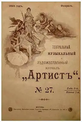 ![]() Театральный, музыкальный и художественный журнал «Артист», № 27, февраль 1893 года. Обложка. | |