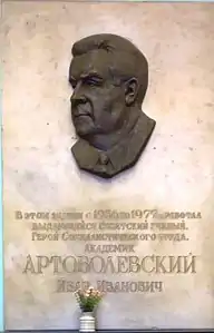 - Мемориальная доска в старом здании Института машиноведения.