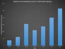 В 1912 году выдана первая партия угля — 45 пудов (737 кг.) из пласта «Алмаз». В 1913 году в поселке началась добыча угля, в связи с открытием шахт и появившейся возможностью заработать сюда прибывали рабочие из Мордовии, Орловской, Курской, Могилевской, Рязанской, Калужской, Казанской, Екатеринославской губерний. Добыча угля велась вручную с помощью примитивных инструментов (обушок, топор, лопата), транспортировали его с помощью лошадей.
