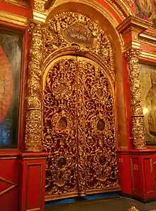 При средних столбах собора в двух- и трёхпоясных иконостасах находятся образы, именуемые царскими. Лики в нижних поясах называются тезоименными, они изображают патрональных святых погребённым царям; во втором ярусе — родимыми, так как были написаны при рождении царевичей; в третьем — гробовыми[9].