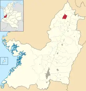 Город расположен в северной части департамента, в гористой местности Западной Кордильеры, на расстоянии приблизительно 142 километров к северо-северо-востоку (NNE) от города Кали, административного центра департамента. Абсолютная высота — 1623 метра над уровнем моря[2].
