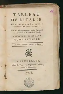- Англия и Италия / Сочинение Архенгольца; Перевод с немецкого. — Москва: В типографии Кряжева, Готье и Мея, 1802—1805.