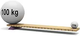 На основании этих постулатов Архимед сформулировал закон рычага следующим образом: «Соизмеримые величины уравновешиваются на длинах, которые будут обратно пропорциональны тяжестям. Если величины будут несоизмеримы, то они точно так же уравновесятся на длинах, которые обратно пропорциональны этим величинам»[22].