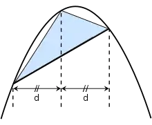 Каждое слагаемое ряда — это общая площадь треугольников, вписанных в неохваченную предыдущими членами ряда часть сегмента параболы.