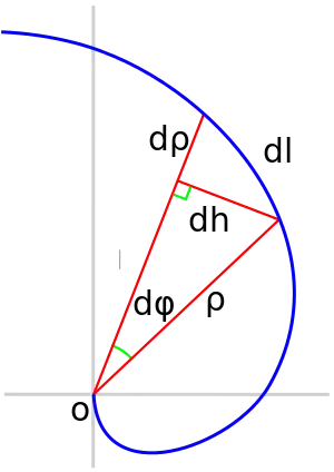 где — приращение радиуса , при приращении угла на . Для бесконечно малого приращения угла справедливо: