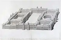Особую страницу в истории архитектуры Британии занял проект дворца Уайтхолл для Лондона. Великобритания подключилась к неофициальному соревнованию европейских монархов по созданию грандиозных резиденций. Испанская империя имела Эскориал и Буэн Ретиро, в Париже стоял роскошный Лувр. Старый дворец с названием Уайтхолл, что был английской королевской резиденцией в 1530—1698 гг., уже не удовлетворял королевских амбиций. Под сооружение отвели земельный участок в 11 гектаров между Темзой и парком Сент Джеймс. По проекту Иниго Джонса новый дворец имел прямоугольный план с семью внутренними дворами. Дворы были окружены корпусами дворцов, в основе которых были трёхчастные блоки (боковые ризалиты, галереи, центр, подчёркнутый ризалитом с фронтоном или двумя башнями с куполами). Углы гигантского каре тоже венчали прямоугольные трёхэтажные башни, возвышающиеся над двухэтажными корпусами. Изюминкой был двор с круглой галереей, украшенной парапетом с вазами. Проект стал первым примером ансамбля европейского образца в Британии.