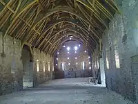 В конце XII в. возник как тип английский усадебный дом — деревянный или фахверковый, c амбарами на первом этаже, жильём на втором; лестница на второй этаж ведёт от холла.