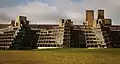 Восстановление, последовавшее после Второй мировой войны, во многом изменило английское искусство и зодчество. Преобладавшая строгость архитектурных черт говорила о том, что многие дизайнерские решения продиктованы стоимостью проектов; однако, появлялись и новые течения. Одним из таких движений был брутализм, с его поисками новых средств выразительности. Это, в частности, интерес к локальному цвету, пластичной броской «модернистской» форме, остро-выразительным фактурам. В подобном стиле построены, например, Hayward Gallery, Центр искусств Барбикан и здание Королевского Национального театра.