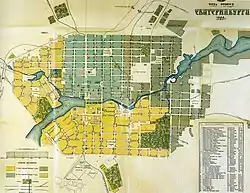 Экономический расцвет и рост населения оказали влияние и на архитектуру старого Екатеринбурга. Развитие планировочной структуры проходило в основном по прямоугольной схеме. Генеральный план города корректировался время от времени — в 1864, 1884, 1910 и 1917 годах. Значительное расширение городской территории происходило в южную сторону от центра, вдоль реки Исети, в несколько меньших масштабах — в других направлениях. В отличие от застройки периода русского классицизма, застройка капиталистического времени отличалась отсутствием жёстких градостроительных концепций. Новые районы застраивались несколько хаотично, в интересах застройщиков и землевладельцев[16].