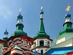 Русское зодчество представлено старейшим каменным зданием, сохранившимся от острога — Спасской церковью, построенной в 1706—1710 годах приезжим мастером Моисеем Долгих. Она была первым кафедральным собором Иркутска. В 1758 году была пристроена колокольня с барочным орнаментом, увенчанная высоким шпилем. Восточный фасад храма в начале XIX века украшен наружными фресками. Так же сочетают в себе элементы древнерусского и барочного стилей Знаменская церковь с ярусной колокольней и празднично декорированный Богоявленский собор с шатровой колокольней. Последний служил в качестве кафедрального храма в течение полутора веков.