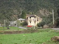 Касерио Ласкорц (Ла-Фуэва, провинция Уэска). В отличие от восточных масий, касерио отвечает стандарту дома-блока, характерного для рассеянного горного населения Пиренеев и Зеленой Испании. Как правило, в одном строении, но на разных уровнях, располагаются склады, жилье и помещения для скота.
