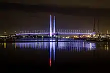 Расположение Мельбурна, охватывающее реку Ярра и её побережье, требовало нескольких водных переходов. Bolte Bridge, самый длинный мост Австралии, является большим двойным консольным мостом, который пересекает Ярру и гавань Виктории в доках, к западу от центра Мельбурна. Bolte Bridge был спроектирован архитектором Denton Corker Marshall с 1996 по 1999 год, а его строительство оценивалось в 75 миллионов долларов. Мост имеет две 140-метровые[59] серебряные (серые бетонные) башни, расположенные по обе стороны проезжей части в середине пролёта моста. Эти две башни являются эстетическим дополнением архитекторов и не соединены с основным корпусом моста[59]. Несколько других пешеходных мостов, которые пересекают реку Ярра, соединяя район Southbank с центром Мельбурна, были построены между 19-м веком и 1990-ми годами. Наиболее заметной ранней многофункциональной переправой через Ярру является Princes Bridge, построенной в 1888 году[60]. Более поздним примером является мост Эвана Уокера, построенный в 1992 году.