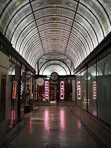 Многие переулки и пассажи Мельбурна стали всемирно известными. Мало того, что они могут похвастаться национальным и культурным значением в Австралии, но без их многообразия теперь невозможно представить и сам Мельбурн. Обилие переулков в центре Мельбурна отражает градостроительный план Мельбурна — сеть Ходдла, созданный в угоду эксплуатации повозок с лошадьми[58]. В некоторых частях города, особенно в районе Little Lon, они были связаны с трущобами эпохи золотой лихорадки. Известные переулки включают Centre Place и Degraves Street. Многочисленные торговые ряды Мельбурна достигли пика популярности в конце викторианской эпохи и в межвоенные годы. К ним, в частности, относятся Block Place и Royal Arcade. Некоторые известные пассажи были разрушены, как Coles Book arcade и Queens Walk arcade. Кафедральный Пассаж, в Nicholas Building (1927), был построен в стиле ар-деко и отражал архитектуру Мельбурна 1920-х годов со стеклянными сводами, витражами, арками и витринами с деревянными панелями, украшенными разнообразными деталями.