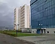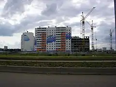 | Жилой дом 19/01 — самое высокое здание в Набережных Челнах | Здание ИТ-парка (бывший недостроенный вычислительный центр КАМАЗа) | Строительство нового микрорайона Яшьлек |