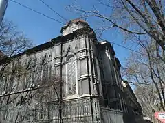 | Интерьер церкви (1894—1896, арх. Л. Ф. Прокопович) Ильинского монастыря. | Бродская синагога, (1863, арх. И. Н. Коллович). | Жилой дом сотрудников НКВД на ул. Маразлиевской, 1а (1929—1931, арх. А. И. Дубинин)[1]. |