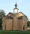 | Пятницкая церковь | Конец XII века | Не сохранился. | Столпообразный четырёхстолпный храм наподобие Свирской церкви, от которой отличается отсутствием боковых приделов и наличием единственного притвора с запада. Центральная апсида полукруглая, сильно выступающая, боковые апсиды пониженные прямоугольные[15]. | |