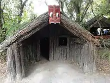 Характерные черты жилых строений маори — маленькая дверь, удлинённая двускатная крыша, формирующая своего рода крыльцо (маори mahau) вместе со стенами, очаг в центре и спальные места вдоль стен[3]. Дверь всегда расположена либо справа, либо в центре здания, единственное окно находится слева, в случае, если окон два, они располагаются с обеих сторон от двери. Над дверью помещается табличка с названием дома[7]. Пол устилают маты из новозеландского льна (маори whariki) или ковры[7].