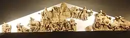 Наружные стены как греческих, так и римских храмов первоначально были богато украшены и красочны, особенно на антаблементе и крышах; это же было ещё более характерно для этрусских храмов. Для колонн из дерева их основания и капители часто были заключены в окрашенную терракоту. Все края крыши были украшены чаще всего ярко окрашенной терракотой, и, вероятно, часто вдоль центрального гребня крыши располагался ряд скульптур, выходящих за группу акротериев над фронтоном в греческих и римских храмах. Так, считается, что Аполлон Вейский был частью группы акротериев. Многие повреждённые остатки поздних скульптурных фронтонов сохранились в музеях Италии и Греции. В частности, в городах Ортоново и Таламоне.