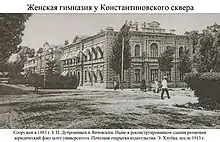 - Здание Реального училища на углу Махрамского (сейчас Узбекистанский проспект) и Константиновского проспектов. В советское время в здании располагался химический факультет САГУ, а затем ТашГУ.