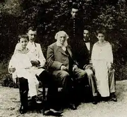 (На фото слева направо: Константин Арцеулов, сидит на руках своего отца Константина Николаевича, И. К. Айвазовский, внуки Айвазовского — Александр Латри (стоит), Михаил Латри и Николай Арцеулов (в матросской форме).