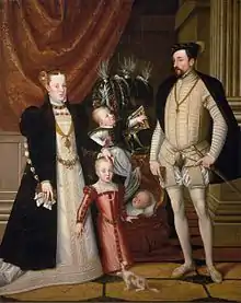 Много неясного с известным портретом императорской семьи, обычно приписываемым Арчимбольдо. На портрете изображён император Максимилиан с супругой Марией, старшей дочерью Анной и сыновьями Рудольфом — будущим императором — и Эрнстом, выглядывающим из колыбели. Судя по видимому возрасту детей, изначально портрет был выполнен другим художником не позднее 1553 года, следовательно, Арчимбольдо принадлежит лишь копия с ныне утраченного оригинала[18].