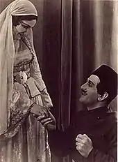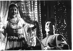 Оригинальный текст (англ.)[показатьскрыть]Viewers in the nationality regions were regaled with glamorous tales about medieval bards and star-crossed lovers. These were films in the neo-folkloric style of late Stalinism. Narodnost' became respectable again. Azerbaijan's contribution to this genre was the musical masterpiece, A Measure of Cloth (Arshin mal alan, 1945), based on Uzeir Gadzhibekov's comical operetta from a traditional folk- tale, which followed the endearing courtship between the merchant, Askar, and the love of his life, Giul'chara (figure 4).
