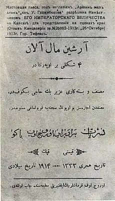 В 1915—1916 гг. комедия «Аршин мал алан» игралась в Ахтах[32].