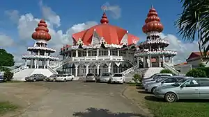 В 1936 году организация возвела первый индуистский храм, собиравшиеся в котором верующие принимали участие в обрядах вокруг ведического огня, характерных для реформаторского движения. Официально мандир был освящён в 1947 году. В арийском храме, однако, отсутствовали изображения. Ранее верующие собирались в аудиториях, оборудованных под религиозные нужды. Культовое сооружение, возведённое в 1936 году, в архитектурном плане соответствовало типовому арийскому храму. Он был уничтожен в 1975 году с целью расчистить территорию для строительства нового. Однако, в связи с коренными изменениями в плане строительных работ и финансовыми трудностями, возникшими в ходе ухудшения экономической ситуации в Суринаме в 1980-х—1990-х годах, на возведение здания ушло около 20 лет.
