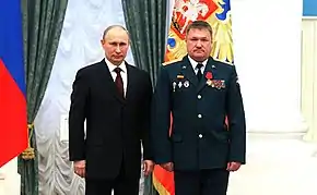 - Орден «Герой Республики» (Сирия, 2017 год)[К 1][212][213][219]. Высшая государственная награда, присуждаемая в том числе и «военнослужащим братских и дружественных армий, участвующих наряду с Сирийской арабской армией в борьбе против террористических банд и враждебных элементов»[220][221].