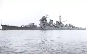 После модернизации крейсер находился во Внутреннем море. В середине октября крейсер в составе 2-го Ударного Соединения принял участие в попытке преследования «разгромленного» американского флота, который атаковал остров Формоза. На самом деле японцам противостояло полностью боеспособное и значительно превосходящее в силах соединение американского флота. К счастью, воздушная разведка своевременно сообщила о силах противника, и японские корабли вернулись на базу. Вскоре поступило сообщение о начале высадки американцев на Филиппинах и почти все боеспособные силы японского флота были брошены в решающее сражение[7].