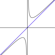 Замечание 3: В некоторых случаях, таких как алгебраическая геометрия, асимптота определена, как прямая, которая является «касательной» к кривой на бесконечности[5].