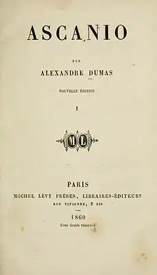 - Mercedez Balda, Manuel Galguera. Ascanio (Ascanio, 1843) // Alejandro Dumas: Vida y obra. — Cordoba: Villa Rivera Indarte, 2009. — P. 19. — ISBN 9789872380564.