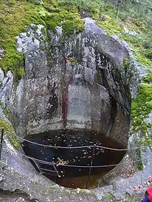 Исполинский котёл глубиной 10 м и диаметром 4 м, находится к северу от Аскола.