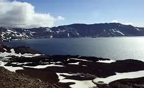 Во время извержения вулкана, начавшегося 29 марта 1875 года, в кальдере вулкана площадью около 45 км² образовались два крупных озера: