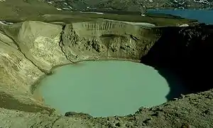 ![]() Озеро Эскьюватн в кратере Аскьи (фотография 1984 года). Снимок USGS. | |