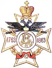 - Юбилейное знамя с надписью: «1763—1863». Пожаловано 15 декабря 1863 года.