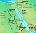 Карта Куша в царствовании Аспелты с маршрутами военной компании фараона Древнего Египта Псамметих II против царства Куш.