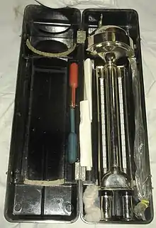 Хранится и переносится прибор с принадлежностями в специальном футляре.