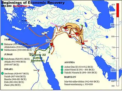 Ассирийские завоевания. Вторжения арамеев. Попытки экспансии Египта. Тирская колонизация. Рубеж X—IX вв. до н. э.